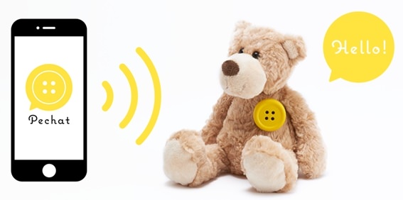 ペチャットは、ぬいぐるみにつけるボタン型スピーカーです。専用のスマホアプリを操作することで、ぬいぐるみを通して子どもとおしゃべりすることができます。